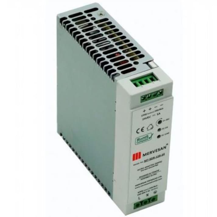 MERVESAN MT SDR 120 24 Ray Tipi Güç Kaynağı , kısa devre koruması ve aşırı yük koruması mevcuttur. MERVESAN MT SDR 120 24 Ray Tipi Güç Kaynağı , cihazının giriş voltajı 100-240V AC 50 /60 HZ. MERVESAN MT SDR 120 24 Ray Tipi Güç Kaynağı , cihazının çıkış voltajı (VDC) 24VDC. MERVESAN MT SDR 120 24 Ray Tipi Güç Kaynağı , cihazının çıkış akımı (amper) 5A. MERVESAN MT SDR 120 24 Ray Tipi Güç Kaynağı , cihazının çıkış gücü (Watt) 120 W. MERVESAN MT SDR 120 24 Ray Tipi Güç Kaynağı , cihazının ölçüsü (mm) 65.5*12.5*100MM.