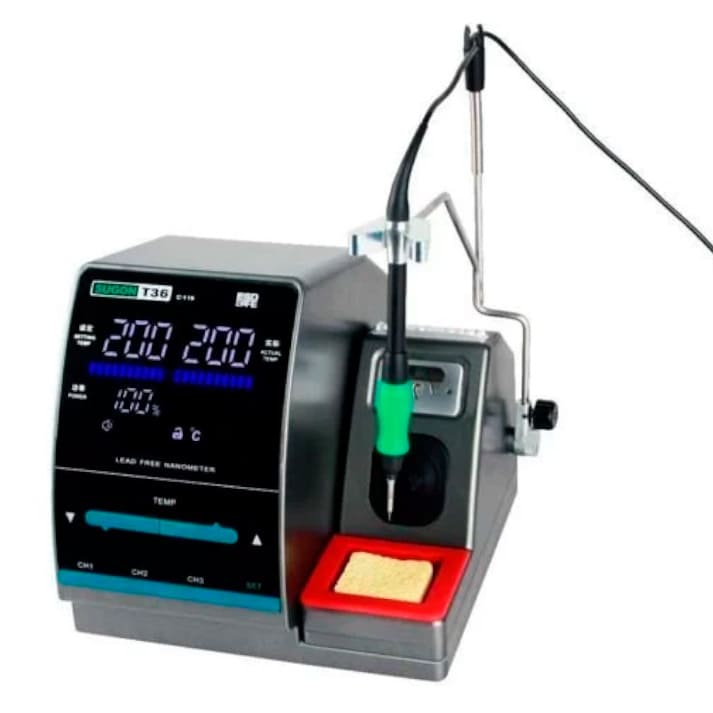 Sugon T36 Hassas Lehim istasyonu, 1 saniyede Hızlı Isıtma Özelligine sahiptir. 300 W yüksek güce sahiptir. Sugon T36 Hassas Lehim istasyonu, İnce uç yapısı ve küçük boyutlu havya kalemi hassas lehimleme gerektiren işler için tasarlanmıştır. Sugon T36 Hassas Lehim istasyonu, Özellikle cep telefonu tamiri, anakart tamiri ve çok hasssas lehimleme gerektiren işler için uydundur. 300 W gücüne sahiptir. Sugon T36 Hassas Lehim istasyonu, Süper hızlı ısıtma deneyimi sunar. Doğrudan sıcaklığı ayarlamak sadece 1 saniye, Sugon T36 Hassas Lehim istasyonu , T26 ile karşılaştırıldığında daha hızlı ısınır ve daha kararlıdır. Süper nano havya ucu , Sugon T36 Hassas Lehim istasyonu, C115 düz uçlu nano lehim havyası ucu, mikroskop kullanırken bile araştırma ve geliştirme, bakım ve diğer yönler için kullanılır. Sugon T36 Hassas Lehim istasyonu, Uçtan lehim kalemine olan kısa mesafe de maksimum kontrol sağlar. Hızlı sıcaklık hafıza kanalı da mevcuttur.Lehimi eritmek için 2 saniye, ısınmak için 1 saniye yeterlidir.Küçük lehim bağlantılarının özel kaynağı için sıcaklık hatası artı veya eksi 1 dereceye ayarlanabilir.Teknik Özellikler;Sıcaklık Aralığı: 200°C – 480°CSıcaklık Hassasiyeti: ±1°CIsı Kontrolü: DijitalHavya Gücü: Genellikle 300 WHavya Tipi: Ergonomik ve hafifDijital Ekran: Sıcaklık ve diğer ayarları göstermek içinHavya Uçları: Çeşitli tiplerde uyumlu uçlarTemizlik Sistemi: Sünger ve metal temizlik sistemiGüç Kaynağı: 220V AC, 50/60Hz (veya ülkenize göre uygun voltaj)Boyutlar: Kompakt tasarımAksesuarlar: Havyayı tutucu ve temizlik süngeriCihazın Kutu İçeriği:Ana üniteLehimleme havyasıLehimleme ucuHavyayı tutucuTemizlik süngeriGüç kablosuKullanım kılavuzu